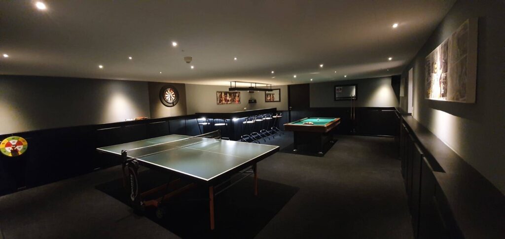 Bioscoop met groot led scherm, Blu-ray-speler, satelliet ontvangst en Playstation met diverse spellen. Daarnaast is er een royale ontspanningsruimte met biljart, tafeltennis en bar met Sony stereo-installatie met cd, bluetooth en usb-aansluiting. Aparte ruimte met luxe Finse sauna.